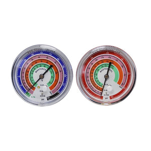 - 3 1/8” SILICONE DAMPENED GAUGES smooth out needle movement while the color coding of R410a, R22 and R404A provides immediate refrigerant recognition